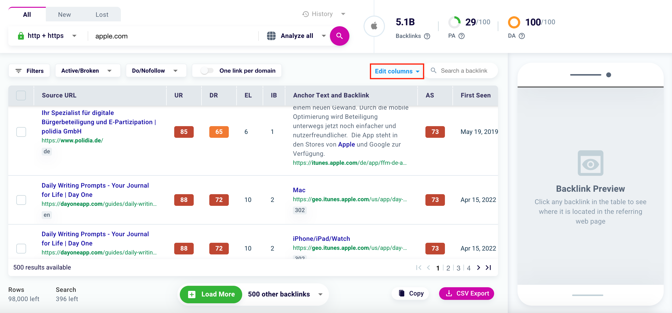 But that’s not all. By clicking “Edit Columns” you can add and observe, for each backlink, other data.