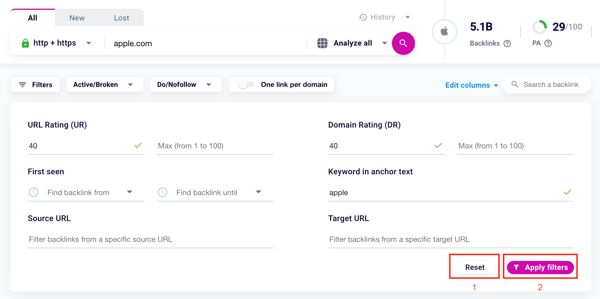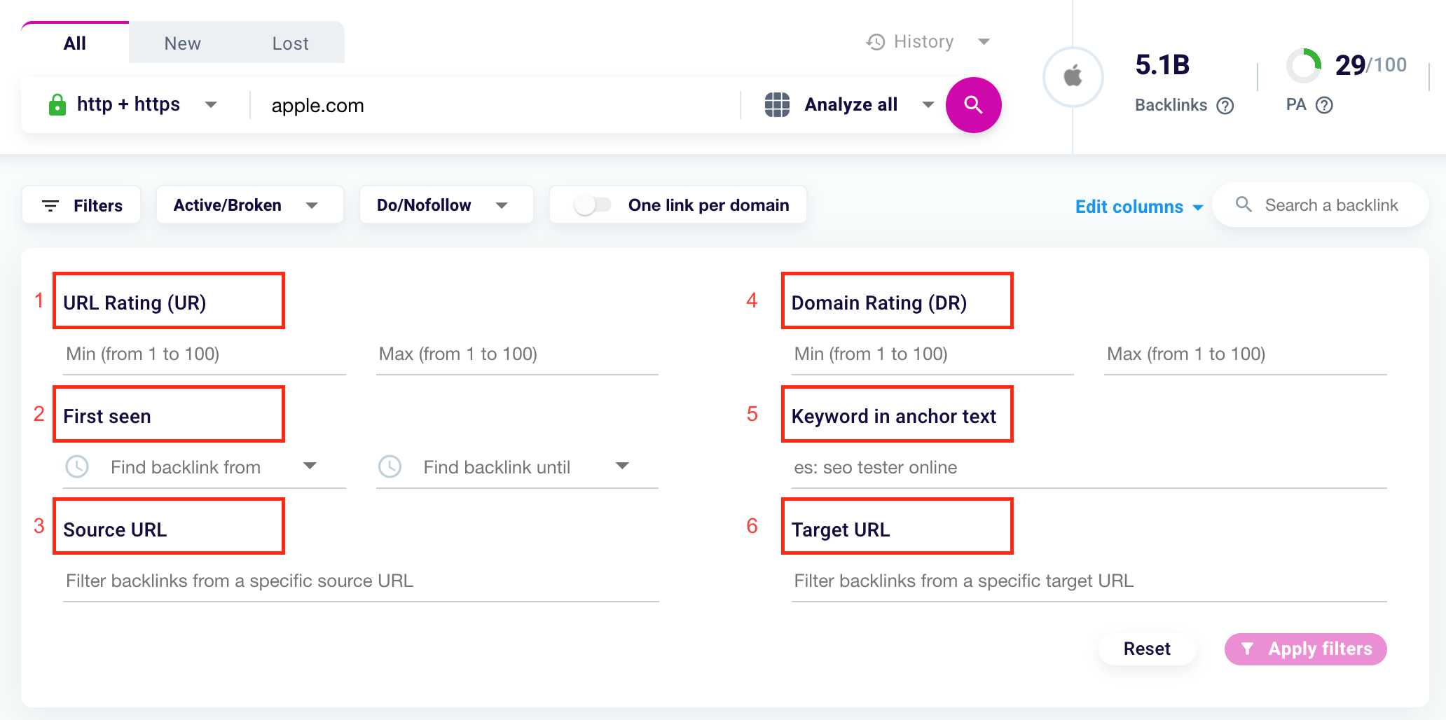 How to use the Backlink Checker’s advanced filters?