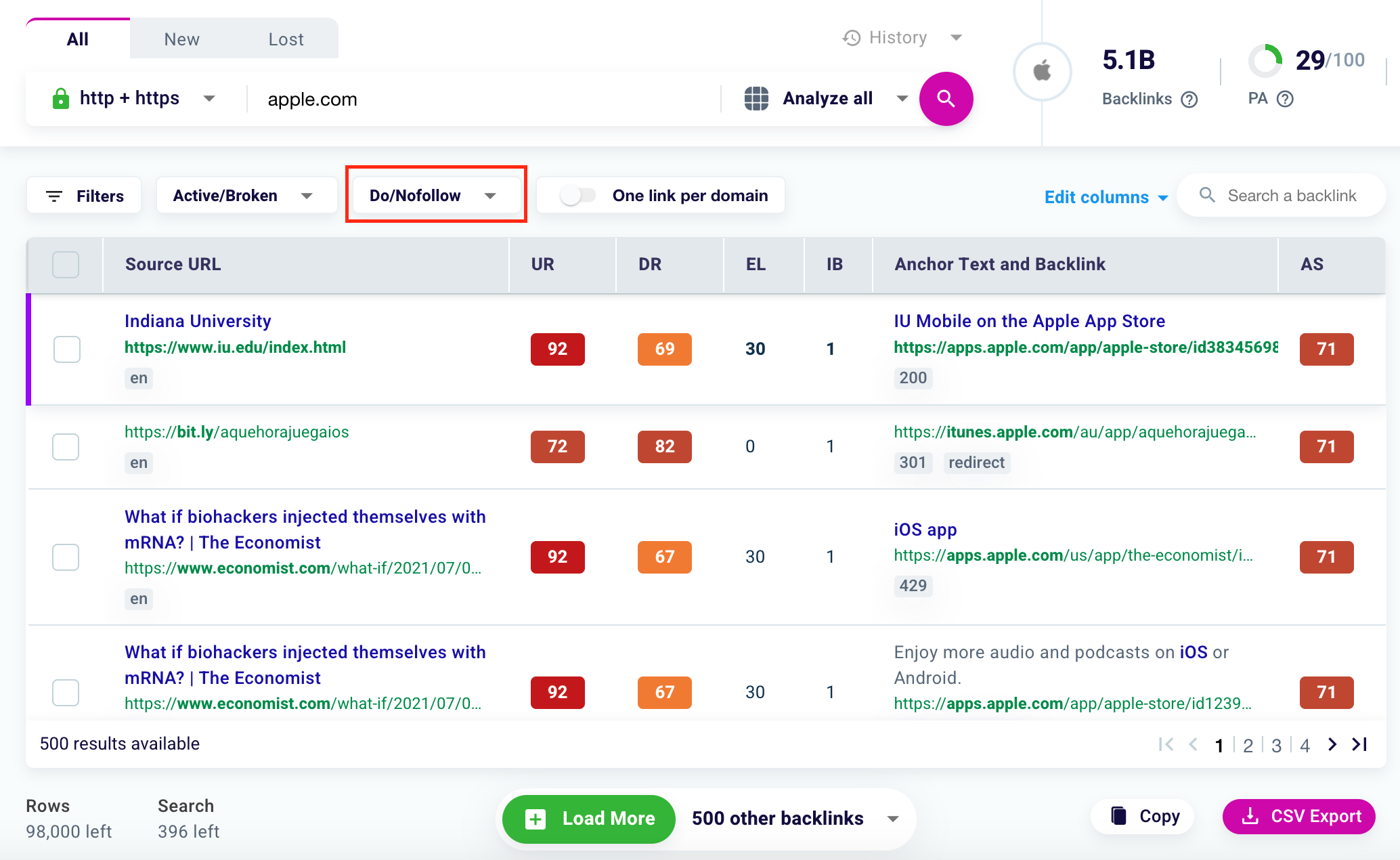 Thanks to our Backlink Checker you can filter Dofollow and Nofollow links.