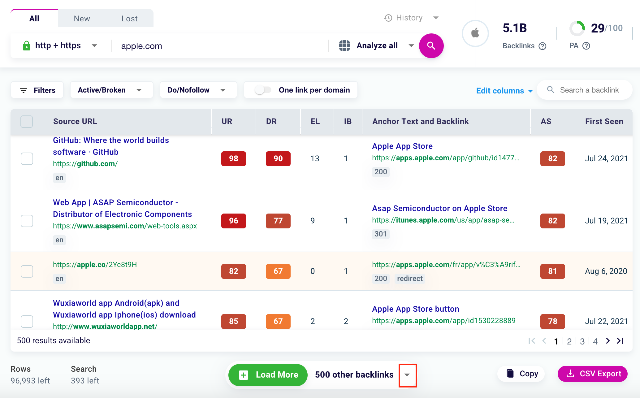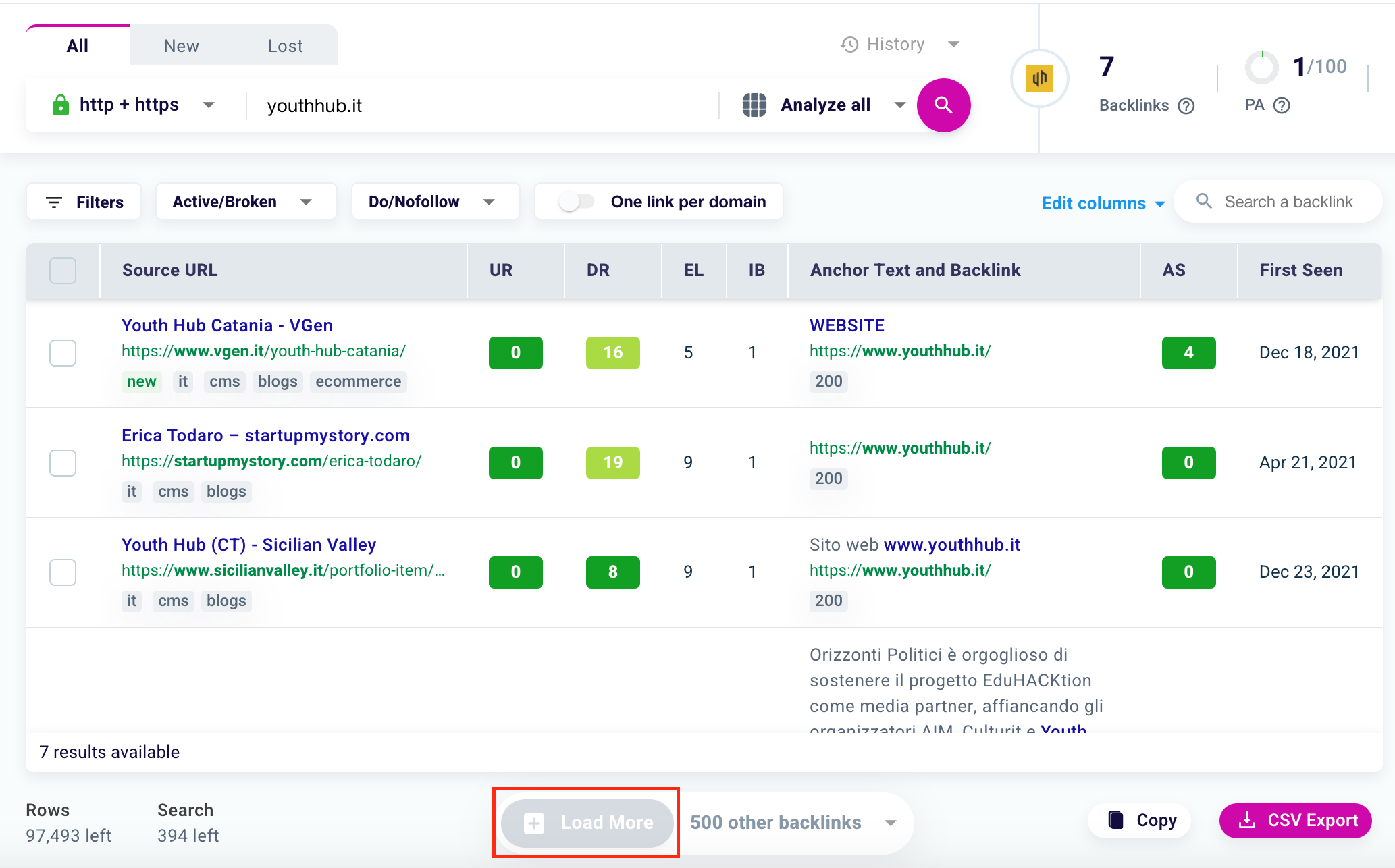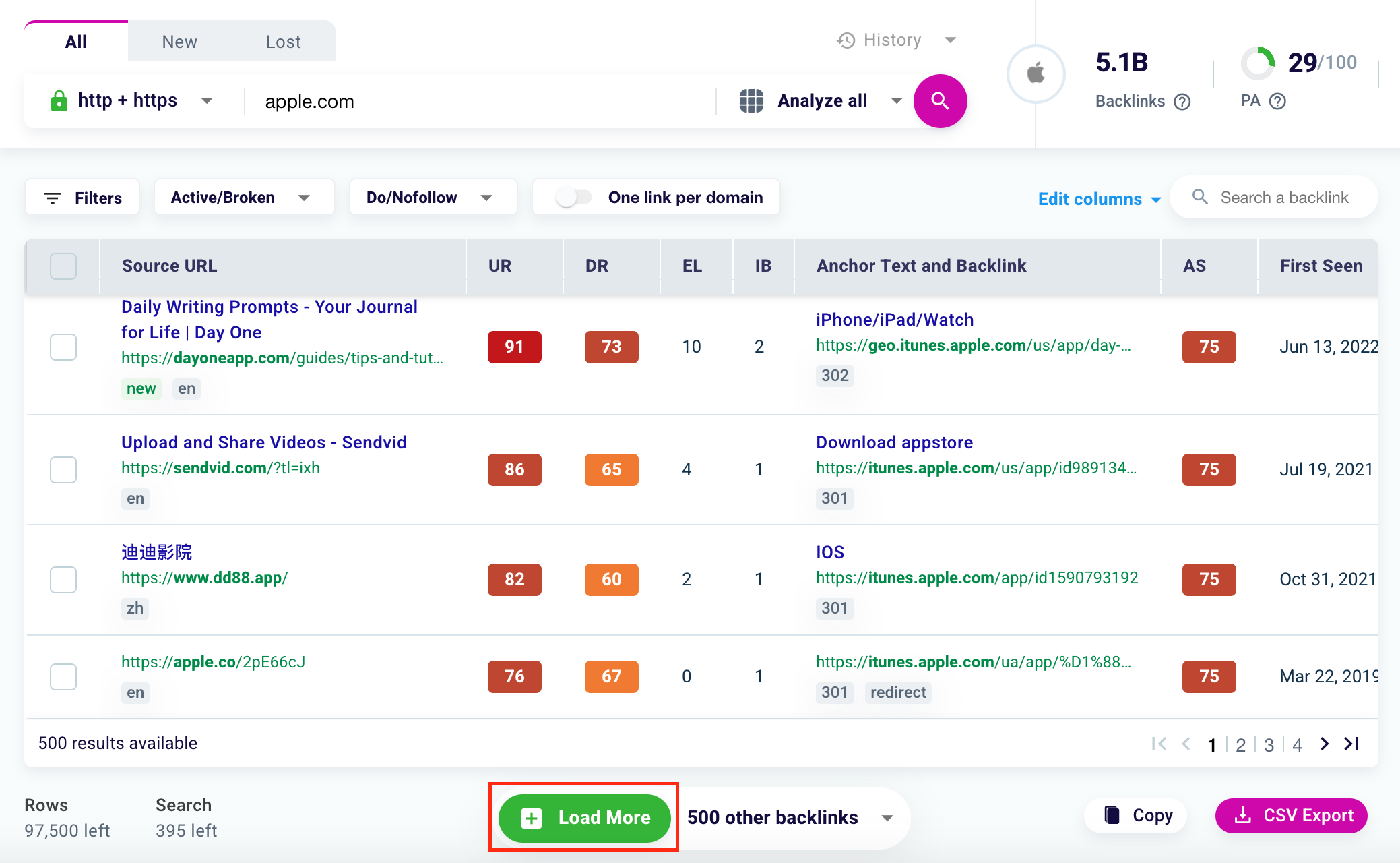 To add more backlinks for review, just click “Load More” at the bottom of the table.